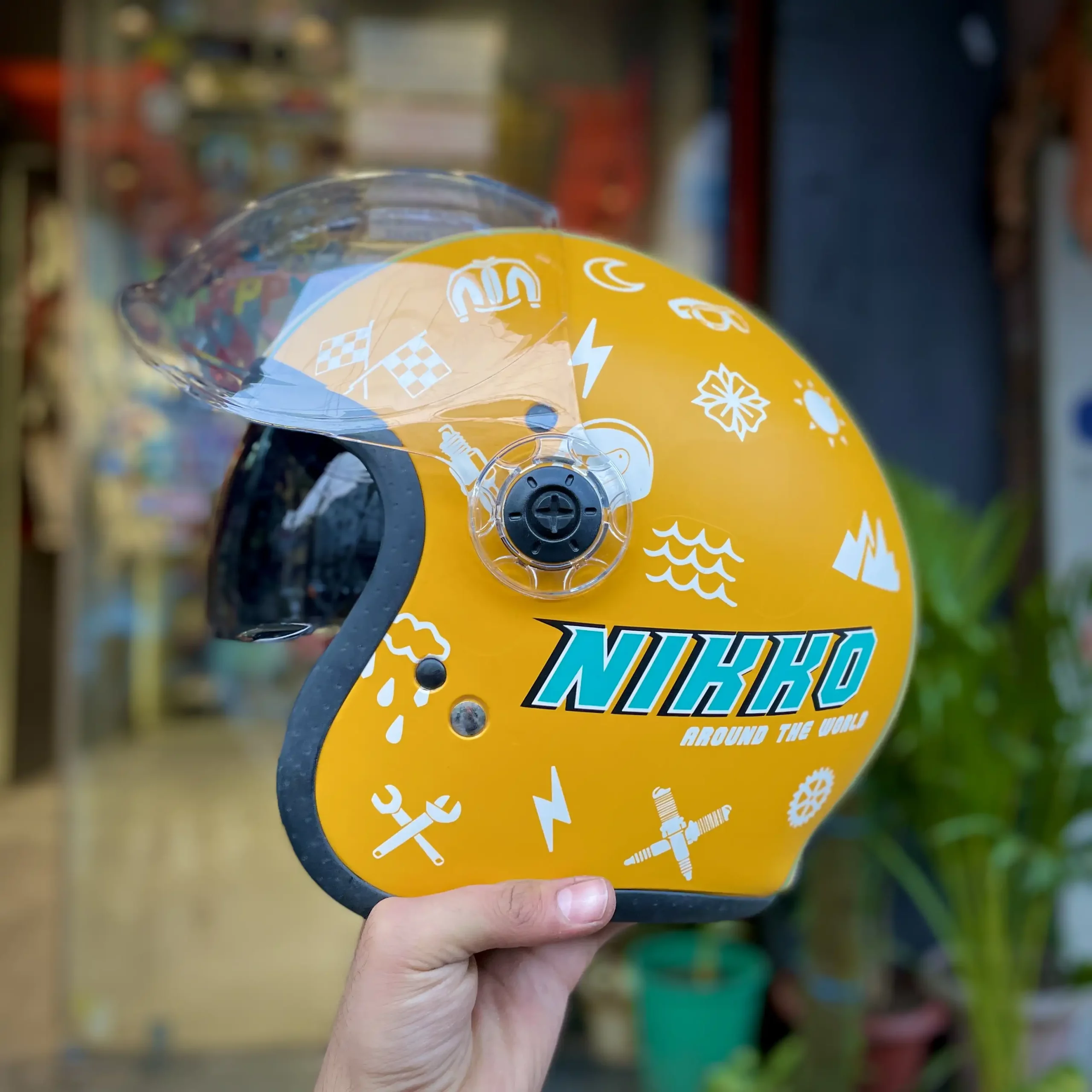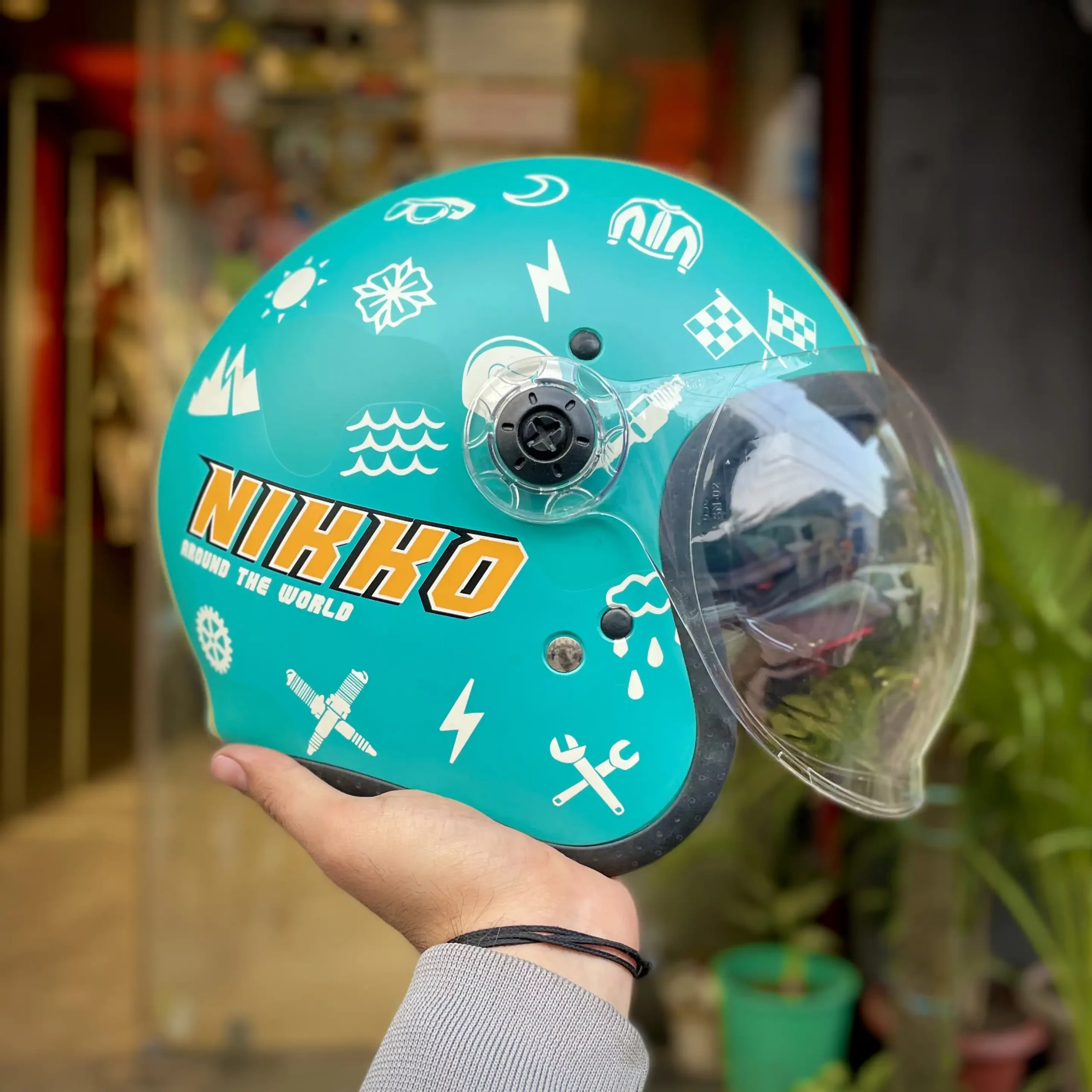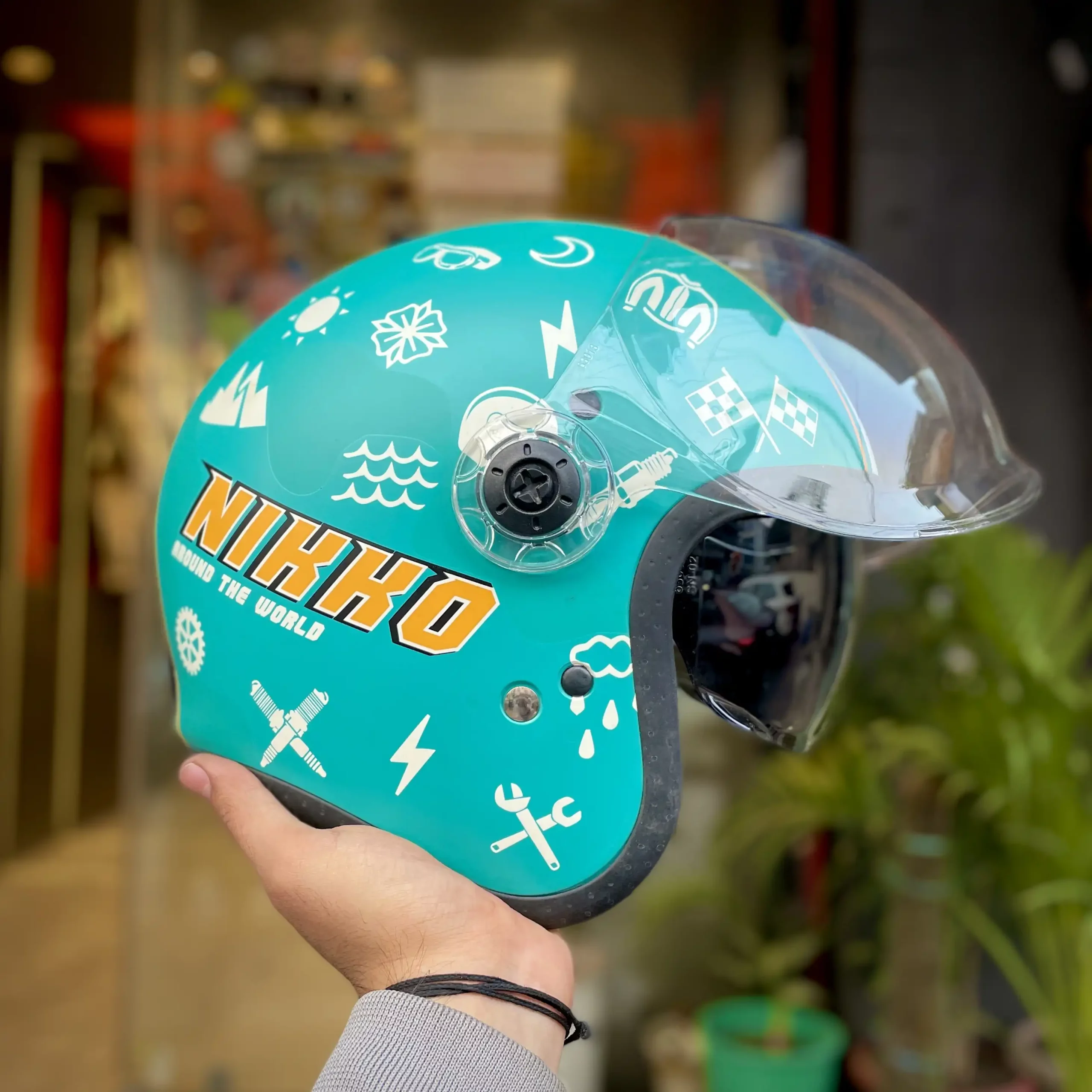 The NIKKO N-502 Half Face Helmet combines unbeatable safety with a striking, contemporary design. Certified by both ISI and DOT, this helmet offers a high level of protection, ensuring you ride with confidence and security. Featuring a dual visor system, it includes both a clear visor and a sun visor, designed to meet all your riding needs—whether you’re navigating through city traffic or cruising down open roads. The Cyan & Yellow Duo-Matt color scheme adds a bold and energetic look, making this helmet not only a safety accessory but also a fashion statement.