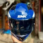 SMK Stellar Sports S01 Gloss Blue/Blue-White Full Face Helmet with Black Visor – DOT/ECE 22.06 Certified with Pinlock