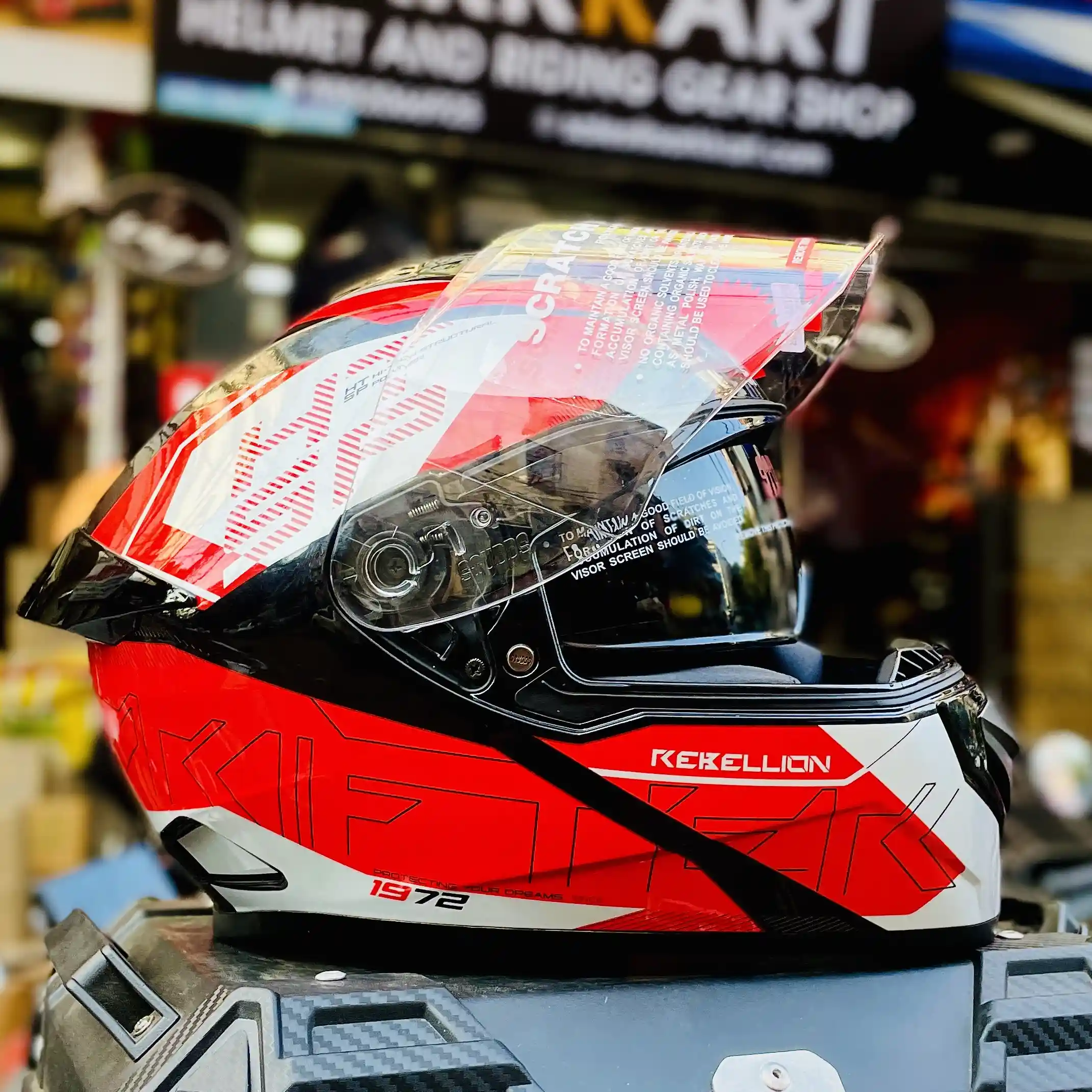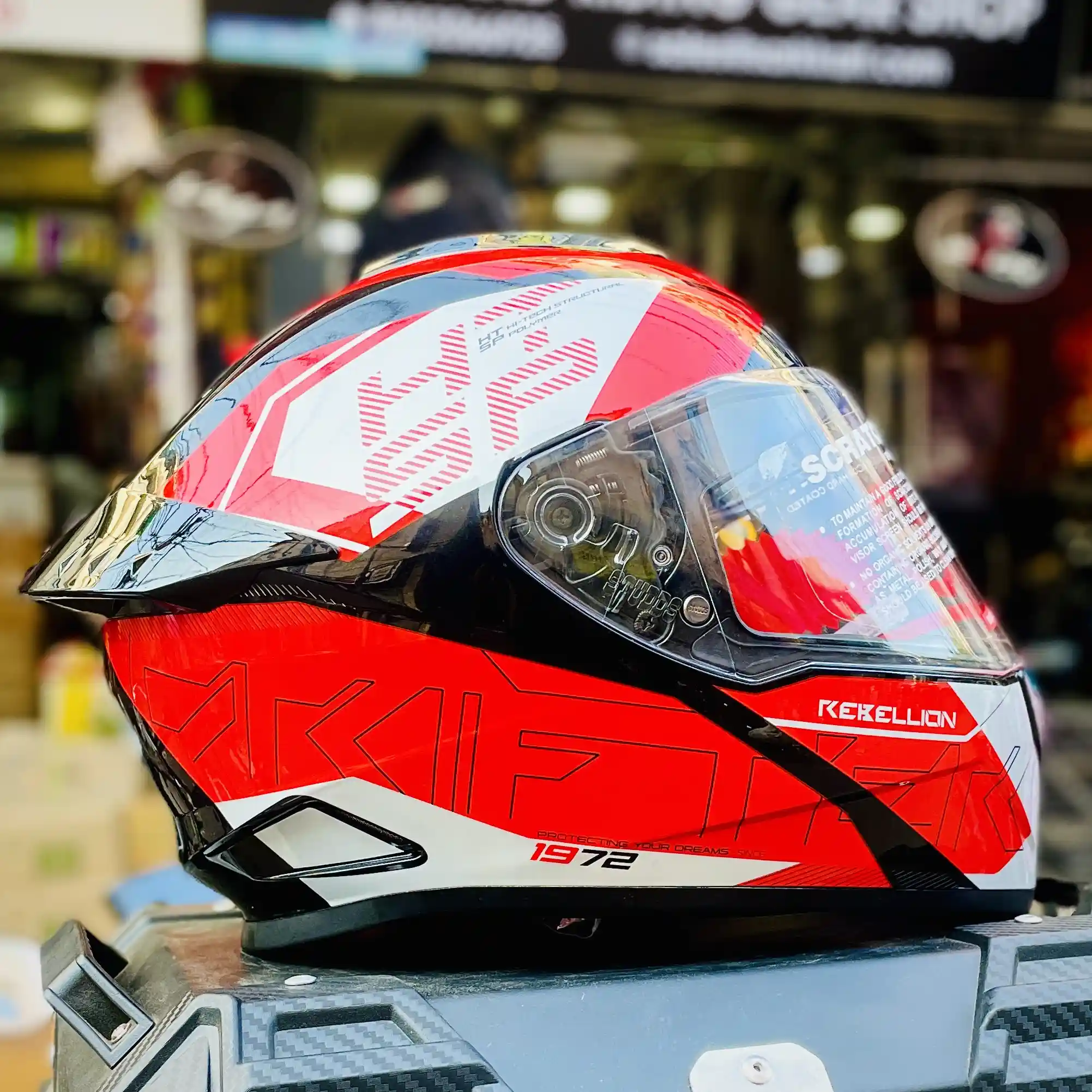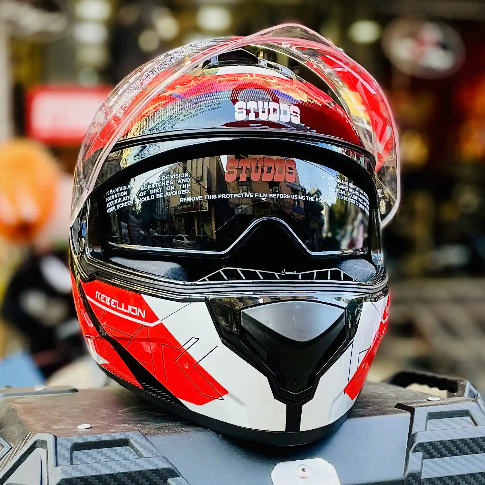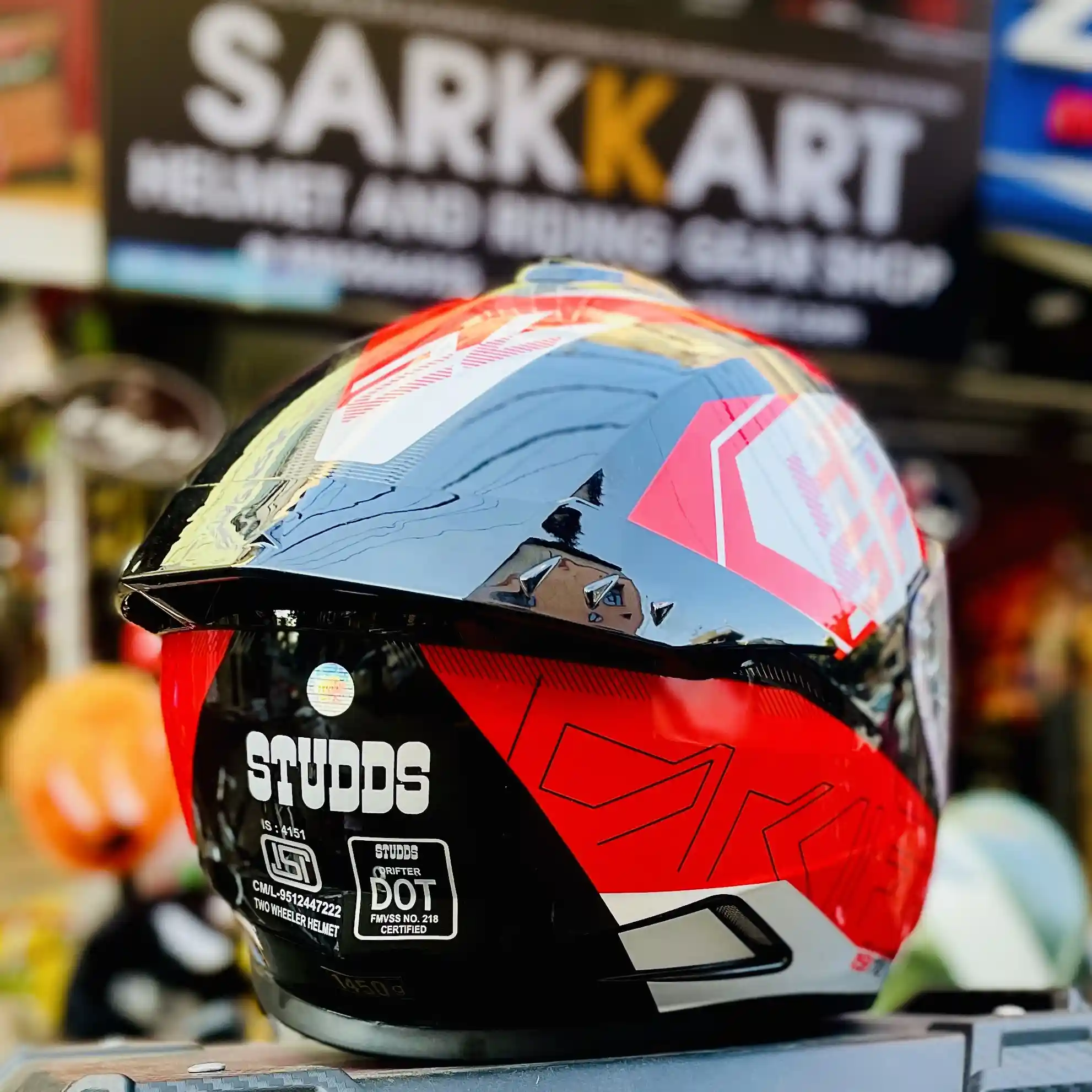 Studds Drifter D6 Rebellion Decor Full Face Helmet with Spoiler and Dual Visor (Black/Red N2) – Clear Visor
