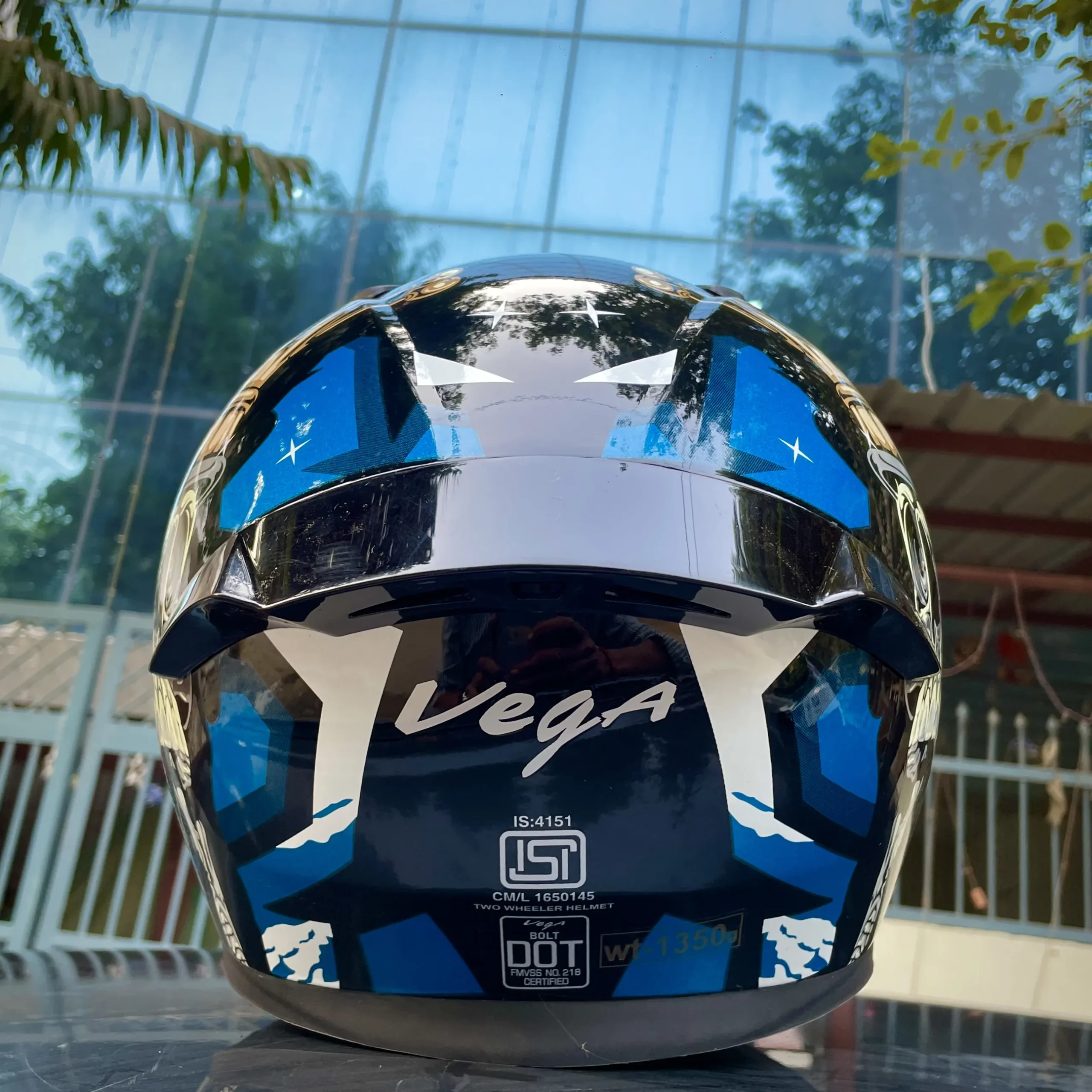 Vega-Bolt DX Crown Men Black Blue Colour Full Face Helmet Dot Approved Limited Edition (Mercury Visor)