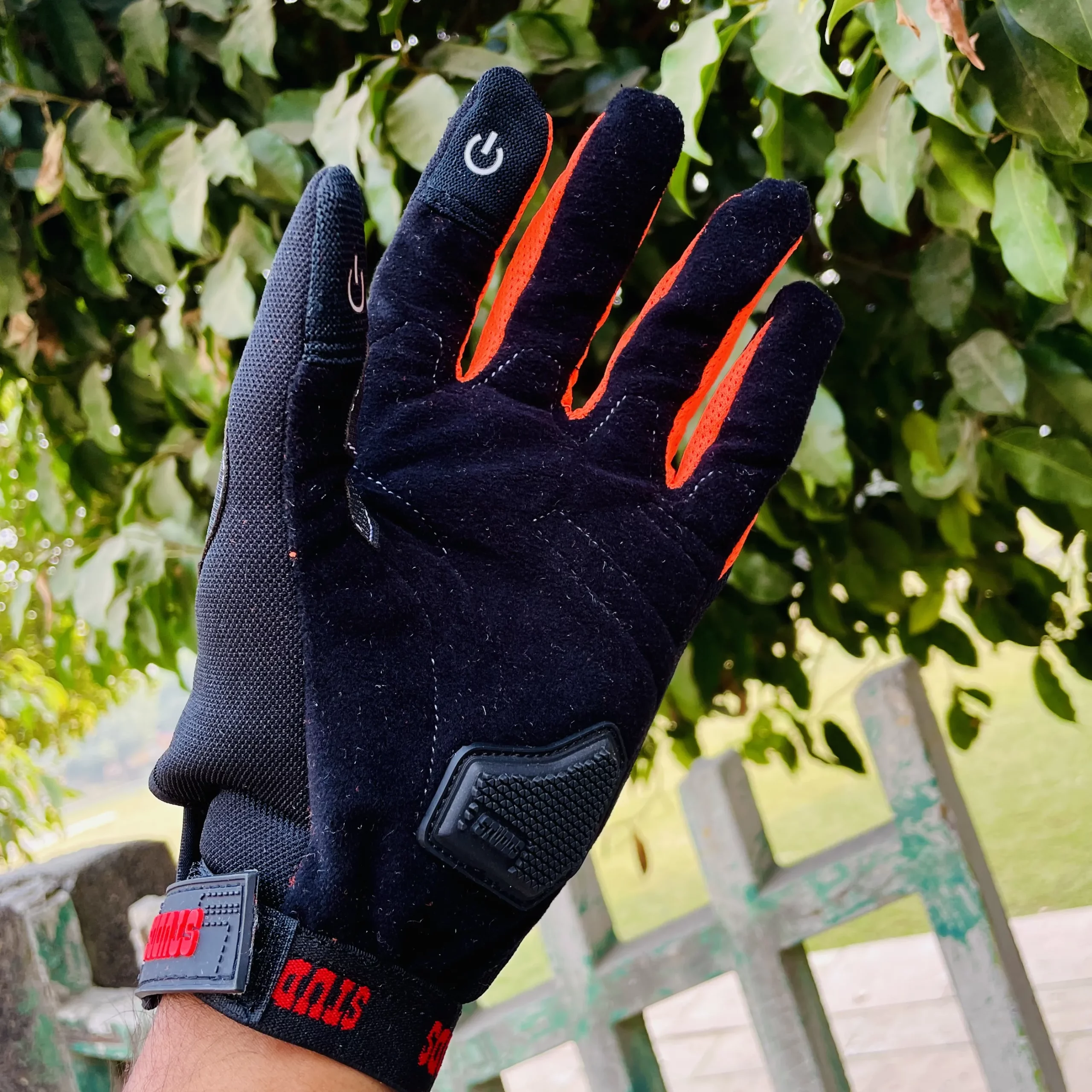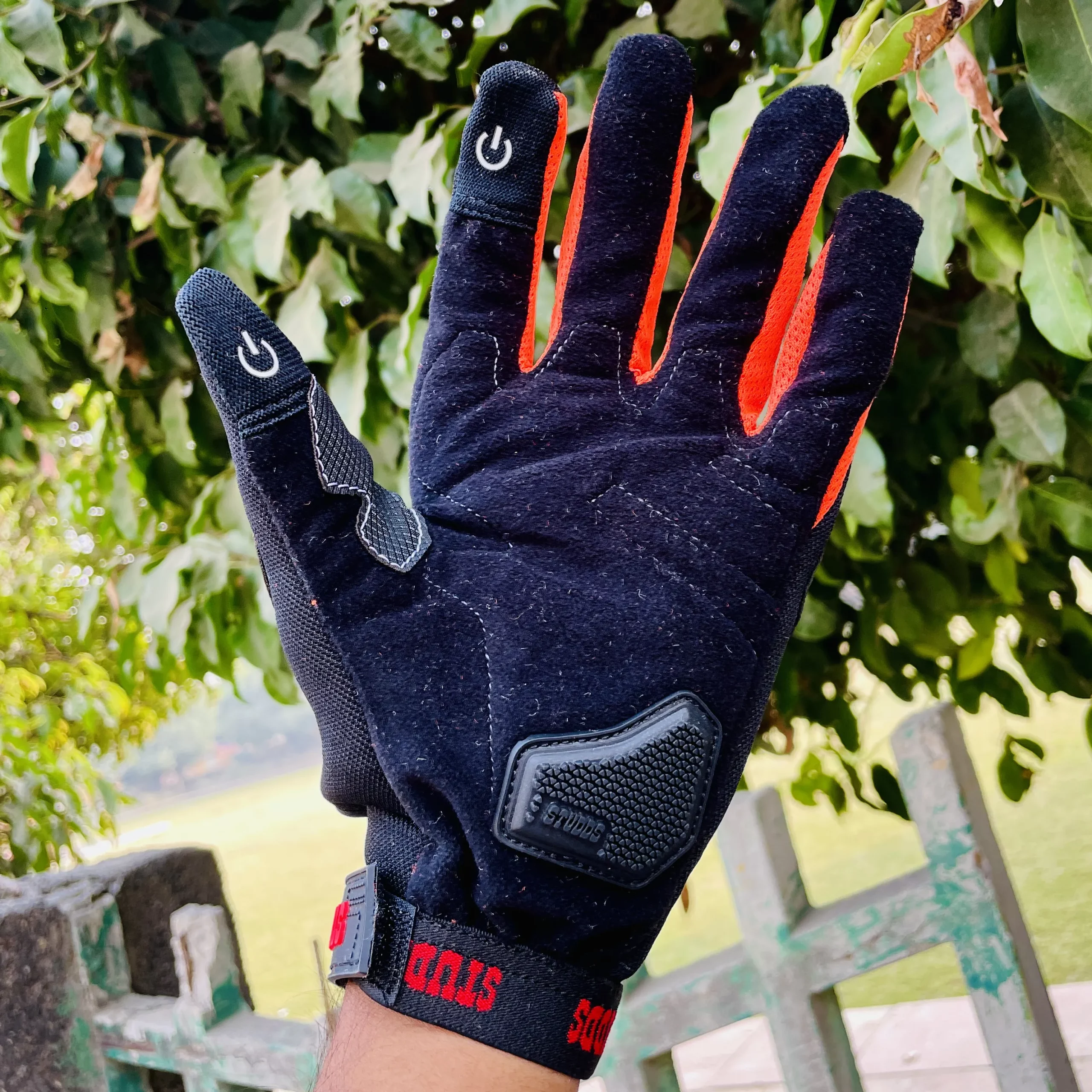 Experience ultimate protection and comfort with the Studds SMG 2 riding gloves black/Orange size L featuring professional-grade TPU knuckle protection and premium mesh fabric construction specifically designed for medium-sized hands. These fashionable full-finger motorcycle gloves combine pre-curved armor design with high-quality fine mesh fabric, ensuring optimal airflow and minimal sweating during extended rides. The precision-engineered Size M fits hands with 7.25-inch length and 8-inch width measurements (20.3 cm circumference), providing secure protection for riders with medium hand dimensions.