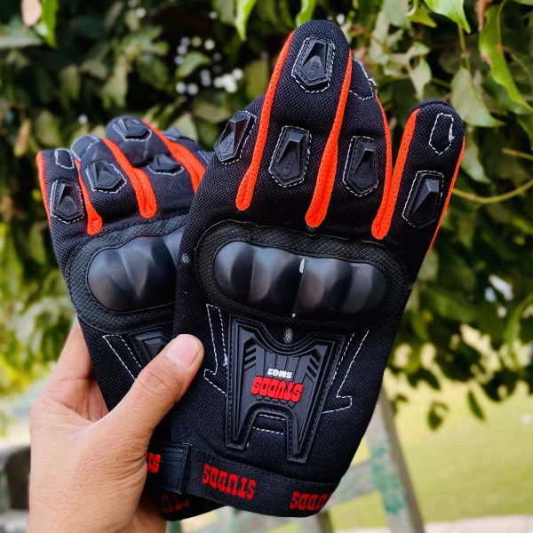 Experience ultimate protection and comfort with the Studds SMG 2 riding gloves black/Orange size L featuring professional-grade TPU knuckle protection and premium mesh fabric construction specifically designed for medium-sized hands. These fashionable full-finger motorcycle gloves combine pre-curved armor design with high-quality fine mesh fabric, ensuring optimal airflow and minimal sweating during extended rides. The precision-engineered Size M fits hands with 7.25-inch length and 8-inch width measurements (20.3 cm circumference), providing secure protection for riders with medium hand dimensions.