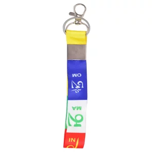 Buddhist Prayer Om Mani Padme Hum Ribbon Key Chain 6 inches Locking Hook keychain