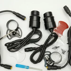 The C9PRO motorcycle dual camera set features Full HD front and rear recording, a waterproof build, and a DVR display system for enhanced riding safety.
