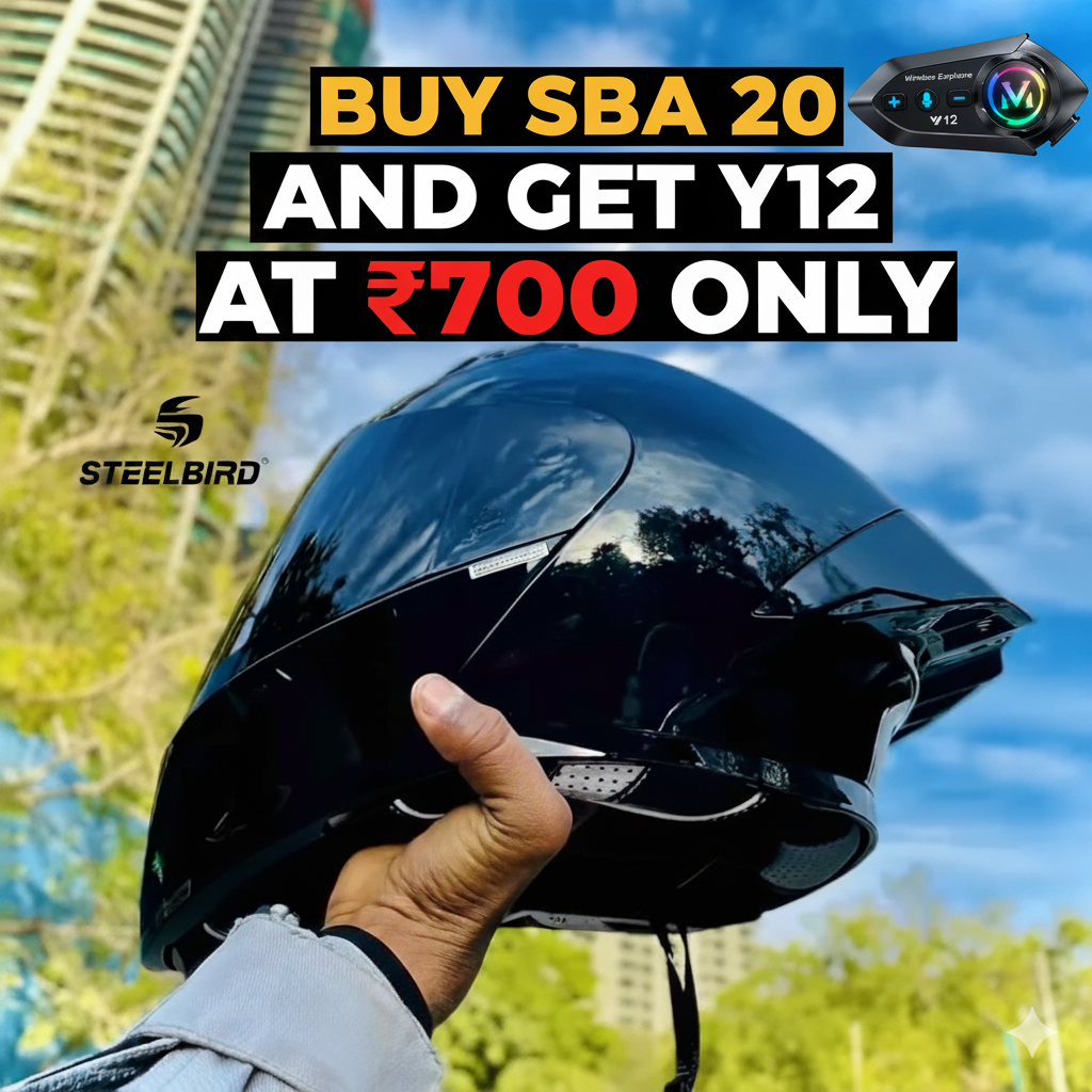 Experience next-level riding comfort with the SBA20 Bluetooth Helmet Combo. This set includes the Steelbird SBA 20 Full Face Helmet with ISI & DOT certification and the Y12 Bluetooth Headphones featuring IPX6 waterproof design, Bluetooth 5.3, and long 32-hour battery life. Enjoy clear sound, safety, and style—all in one for just ?2,700.